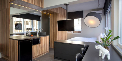 Ενοικιάζεται γωνιακό, διαμπερές και φωτεινό πλήρως επιπλωμένο studio / γκαρσονιέρα, πρόσοψης 100 τ.μ. στην περιοχή "Κέντρο", στον 3ο όροφο, κατασκευής του 1965 και ανακαινισ...